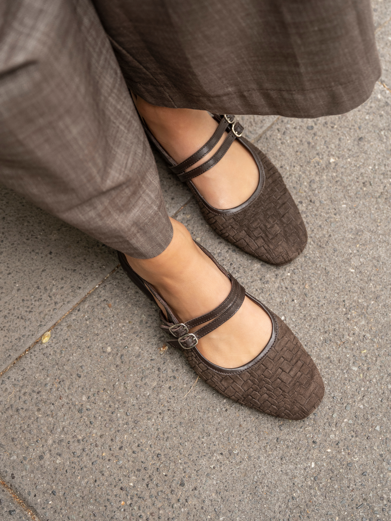 Un diseño elegante con textura y sutileza. Estas ballerinas combinan una silueta clásica con un acabado tramado que aporta un toque artesanal y sofisticado. Sus correas finas aseguran el calce perfecto, ideal para looks casuales o más pulidos.